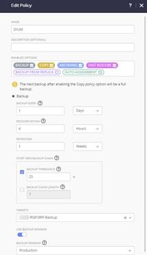 Les jobs de sauvegarde peuvent être déclenchés : • Une fois un taux de modification (backup threshold) atteint afin d’éviter des consommations inutiles de bande passante • Selon une récurrence temporelle (backup chain length)