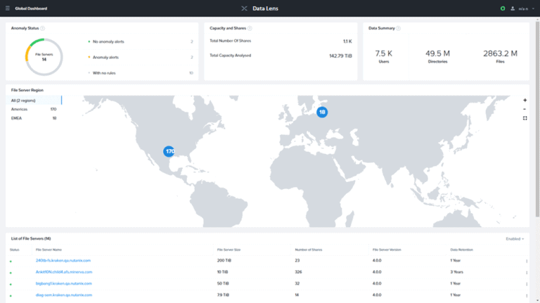 Nutanix Files historise l’accès, et le traitement des données sur une année glissante. Il est ainsi possible de monitorer, d’analyser, et si nécessaire, de fournir des rapport d’accès aux données stockées sur vos serveurs de fichiers.