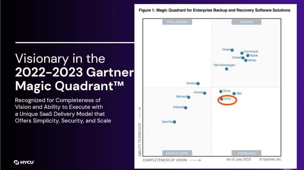 Nous avons également choisi de distribuer Hycu, une solution de sauvegarde visionnaire reconnue pour son modèle de livraison SaaS unique offrant simplicité, sécurité et évolutivité.